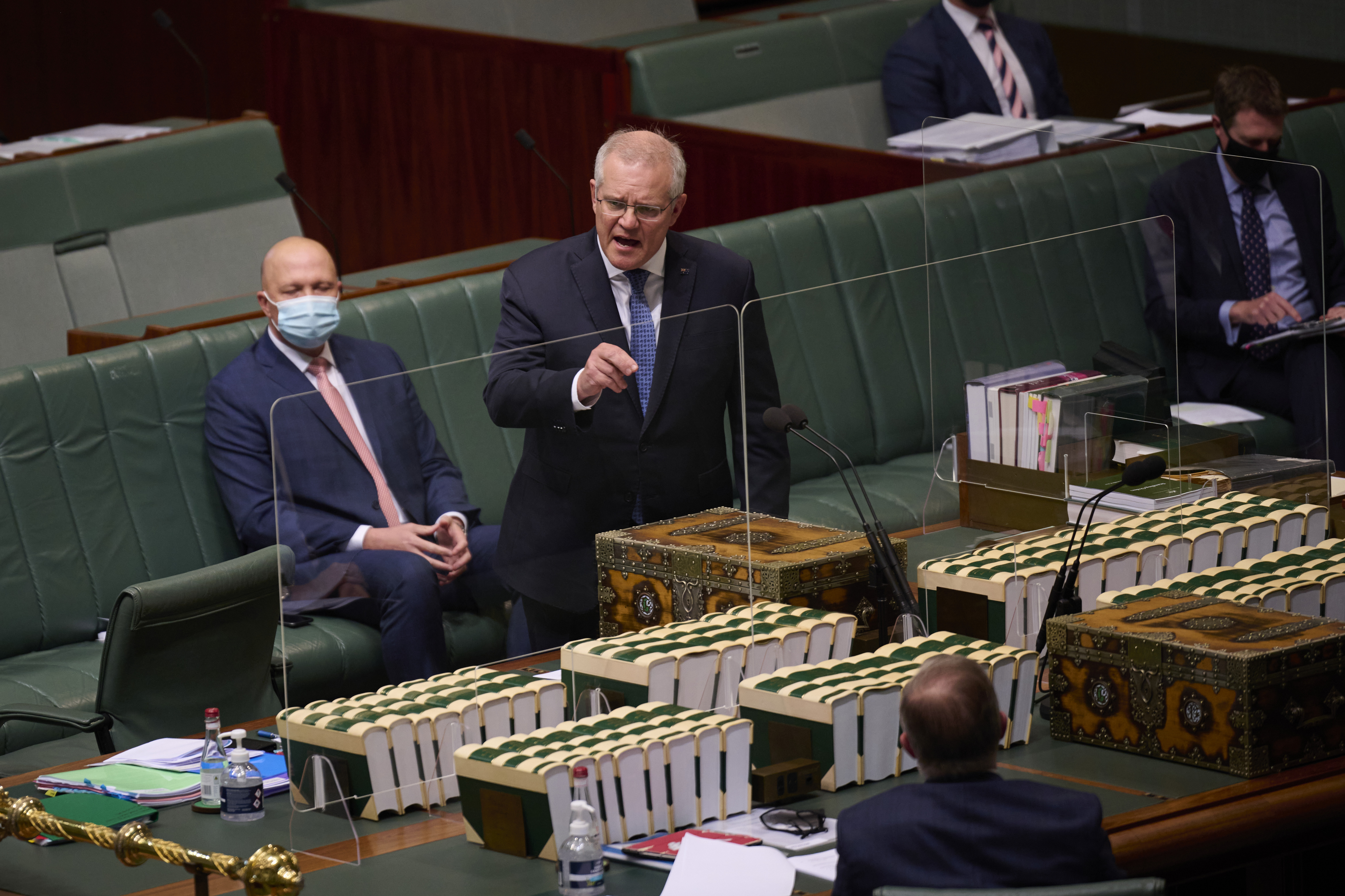 With Parliament adhering to strict attendance limits and social distancing protocols during the Australian Capital Territory's COVID-19 lockdown, a new addition to the House was seen in the form of plastic barriers down the middle of the Table of the House.